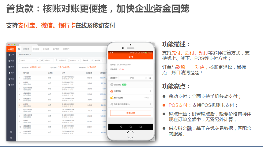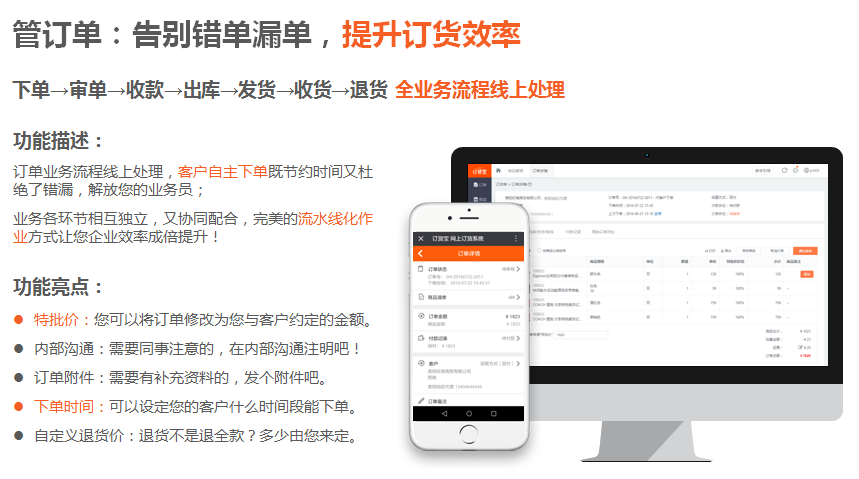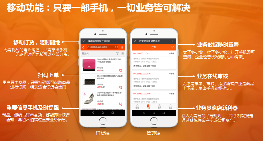 無論是(shì)審單、審款、添加新客戶還(hái)是(shì)商品上(shànδ©$g)下(xià)架,拿(ná)出手機(jī)就(jiù)能₽®(néng)搞定。