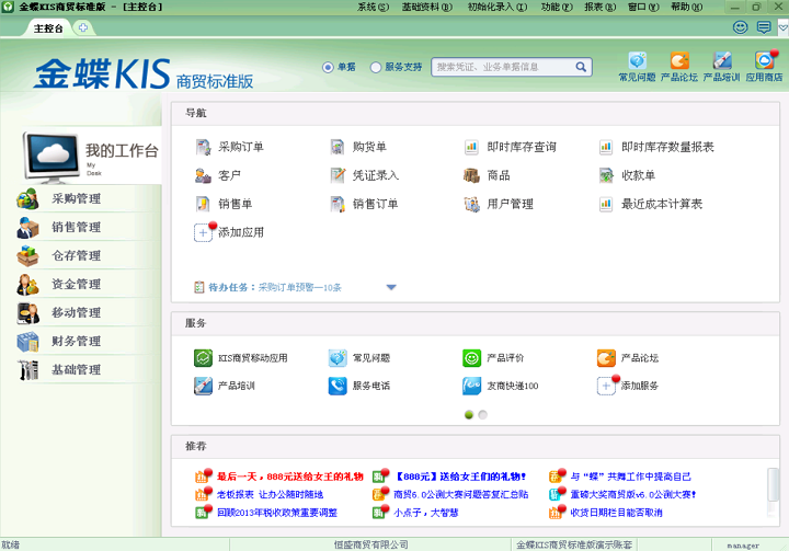 标準産品:采購(gòu)管理(lǐ)、銷售管理(lǐ)、倉存管理→ε¥←(lǐ)、資金(jīn)管理(lǐ)、财務管理(lǐ)、移動應用(yòng)
