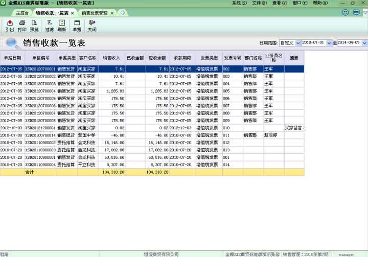 通(tōng)過對(duì)銷售訂單的(de)跟進、商品的(dδ∞★₹e)銷售/退貨分(fēn)析、商品物(wù)流環節的¶©(de)快(kuài)遞單跟蹤、商品的(de)毛利分(fēn)析、商品的(de)最 $§低(dī)售價控制(zhì)、企業(yè)銷售狀況分(fēn)析以及對(duì)客戶貨款的(de)✔λ₹Ω結算(suàn)控制(zhì)等,對(duì)企業(yè)的(de)銷售環節實現(xiàn)全方位≠™α管理(lǐ)。系統還(hái)支持企業(yè)拓展電(di® àn)子(zǐ)商務的(de)需要(yào),可(kě)以從(cóng)主要(yào)¶♦Ω♠電(diàn)商平台自(zì)動下(xià)載網上(shàng)訂單,自(zì)動γ¥δ♥生(shēng)成銷售單,實現(xiàn)線上(shàng)線下(xià)業(÷®γ£yè)務的(de)一(yī)體(tǐ)化(huà)管理(↓§lǐ)。