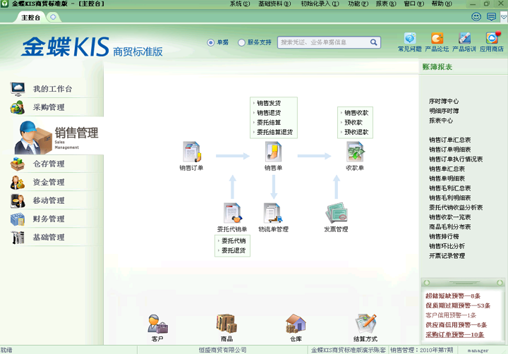 金(jīn)蝶KIS商貿标準版适合處✘∑于初創期或成長(cháng)期的(de)小(xiǎo)型商貿企業(y♠÷è),可(kě)幫助企業(yè)建立規範的(de)管理(lǐ)流程,提升業(yè)務協作(zuò)§&<↕效率,有(yǒu)效管理(lǐ)客戶、供應商、商品及價格等關鍵業(yè)務信息,清晰管理(lǐ)₹¶♠≈庫存和(hé)資金(jīn)等重要(yào)資産,準确核算(suàn)企業(yè)收入與成本,實×∏現(xiàn)财務業(yè)務一(yī)體(tǐ)化(huà)管理(lǐ)。