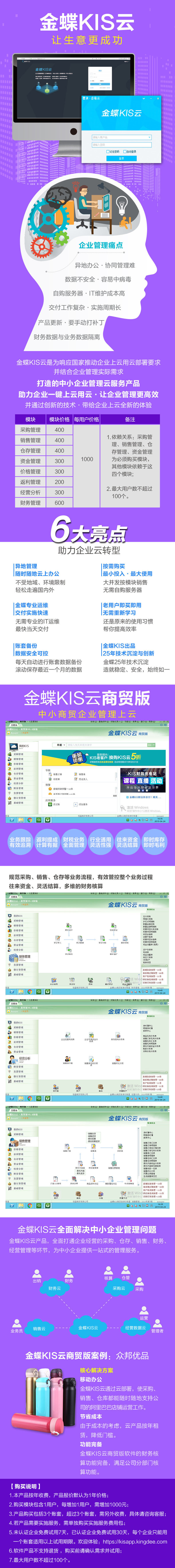 金(jīn)蝶KIS雲是(shì)為(wèi)響應國(guε♥δó)家(jiā)推動企業(yè)上(shàng)雲用(yòng)雲部署要(yào£α)求 并結合企業(yè)管理(lǐ)實際需求 打造的(de)中小(xiǎo)企業(yè)管理(lǐ)雲服務品 助力企業(yè)一(yī)鍵雲用(yòng)雲讓企業(yè)管理(lǐ)更±≥λ¥高(gāo)效 并通(tōng)過創新的(de)技(jì)術(shù)帶給企業(yè)上(shàn δεg)雲全新的(de)體(tǐ)驗!