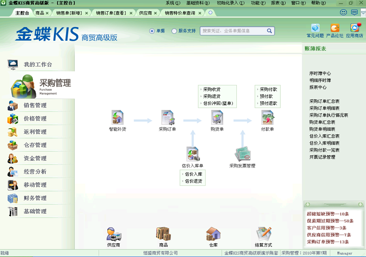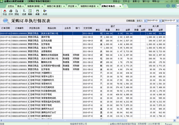通(tōng)過對(duì)庫存及訂單的(de)智能(néng)計γ≤✔(jì)算(suàn)、采購(gòu)訂單的(de)φσ£跟進、商品的(de)進貨/退貨分(fēn)析、商品的(de)最高(gāo)進價限制(¶¥zhì)以及對(duì)供應商貨款的(de)結算(suàn)控制(zhì)等,對(duì¥ )企業(yè)的(de)購(gòu)貨環節實現(xiàn)全方位管理(lǐ)。