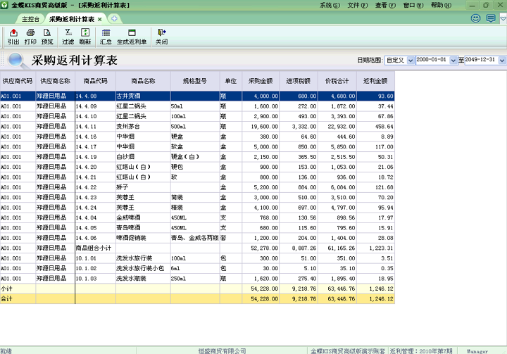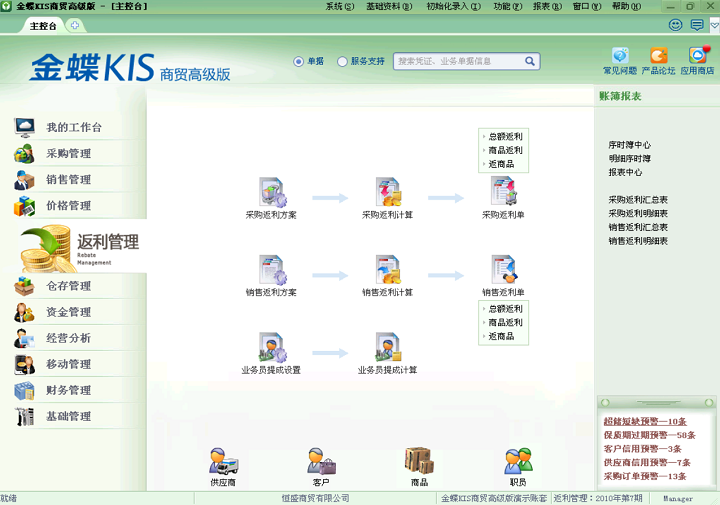 通(tōng)過采購(gòu)返利方案、銷售返利方案以及業(yè)務員(yuá©δσn)提成規則的(de)設置,快(kuài)速計(jì)算(suàn)出™₩各往來(lái)單位的(de)返利金(jīn)額或返回商品的(de←&)數(shù)量,及業(yè)務員(yuán)的(de)業(yè)績提成金(jīn)額。全面規$♠Ω範企業(yè)在購(gòu)銷環節的(de)返利、提成管理(lǐ)。